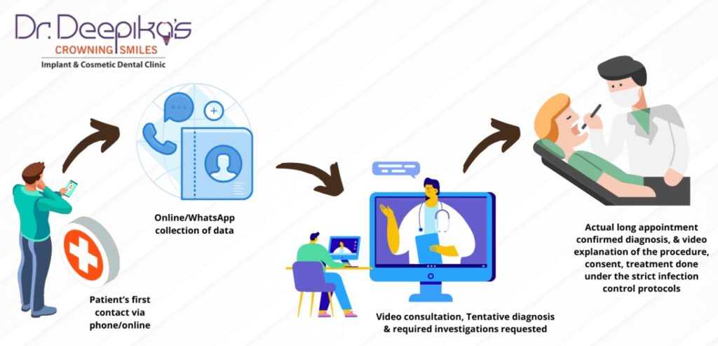 Keeping all the post COVID 19 norms in mind, we follow a pre-screening protocol and schedule a tele-consultation to get an overview of your concerns, requirements and dental history.
